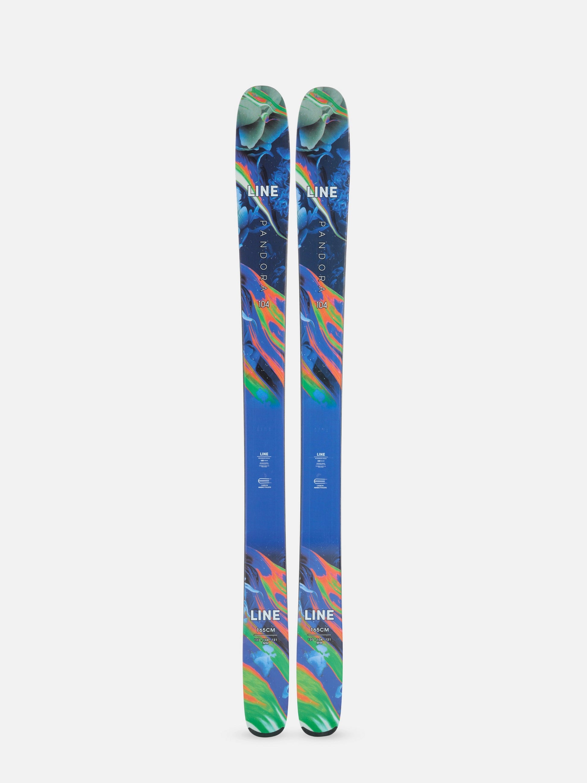 When you're not sure what weather the mountain will bring, rest easy knowing you can grab the trusty LINE Pandora 104, no matter the condition. Created with Magic Finger Carbon Filaments™, the Pandora 104 is your go-to one ski quiver. A lightweight feel and stable ride work together to make the Pandora 104 perfect for carving up morning groomers, ripping through afternoon slush, and floating through deeper days with ease.